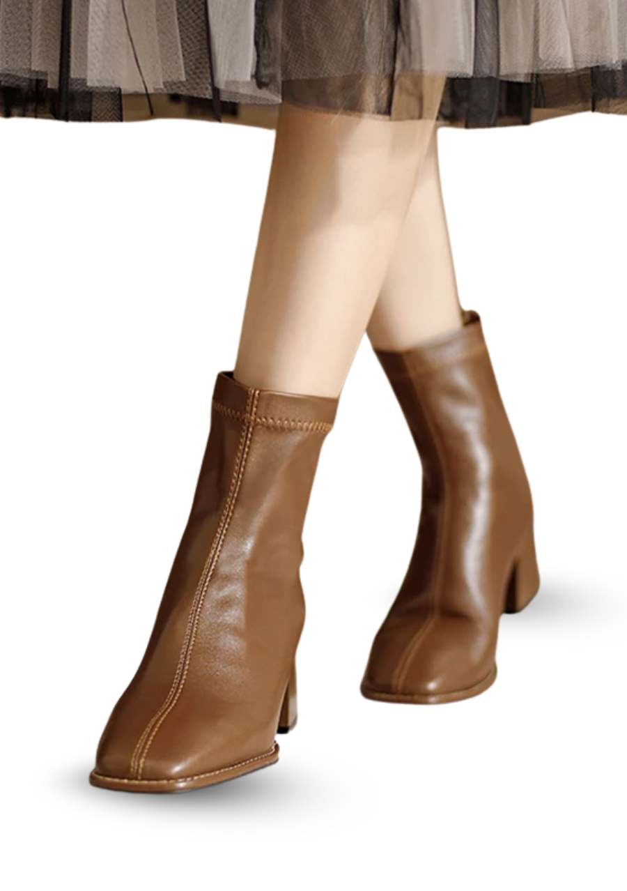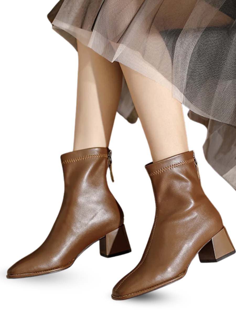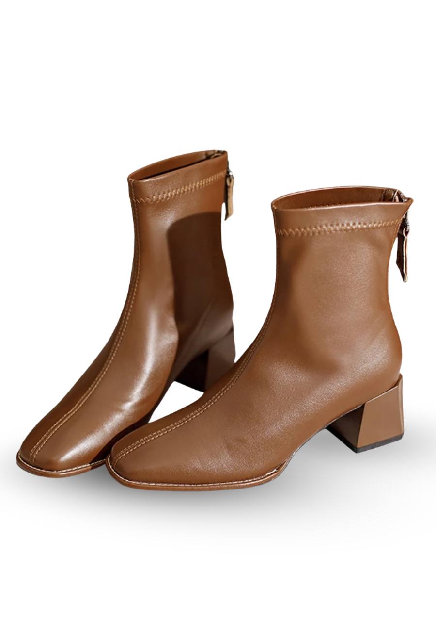 These  boots feature a high square heel (5–8 cm), a square toe, and a fashionable zipper closure. Made from PU with a microfiber lining and fabric insole, they provide comfort while maintaining a modern look. The outsole is rubber for durability, and the design includes a platform for extra height. Suitable for autumn and winter, they are handmade, non-waterproof, and fit true to size. Available in EU sizes 35–40, with a detailed size guide to help you choose the right fit, they are perfect for stylish winter wear.